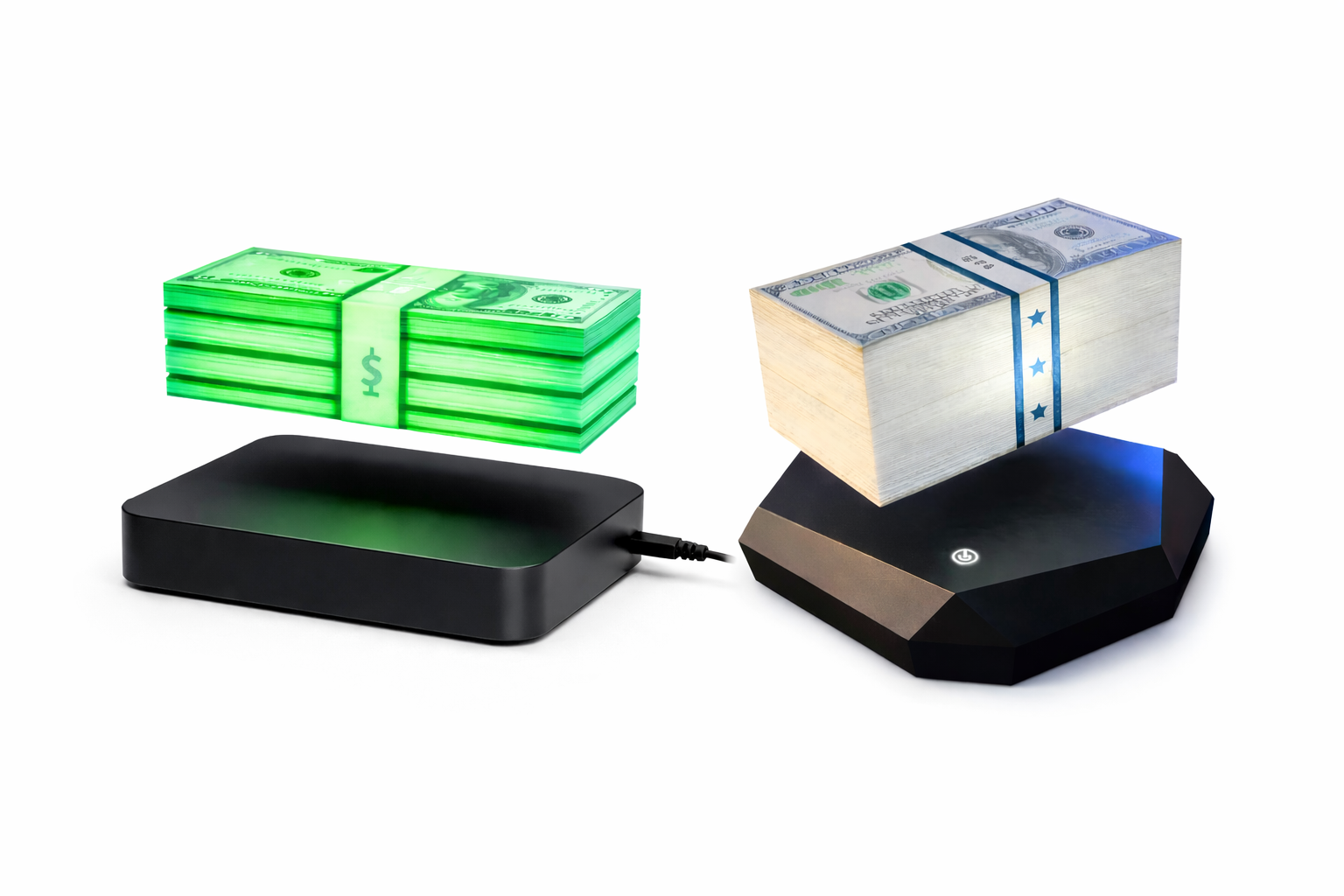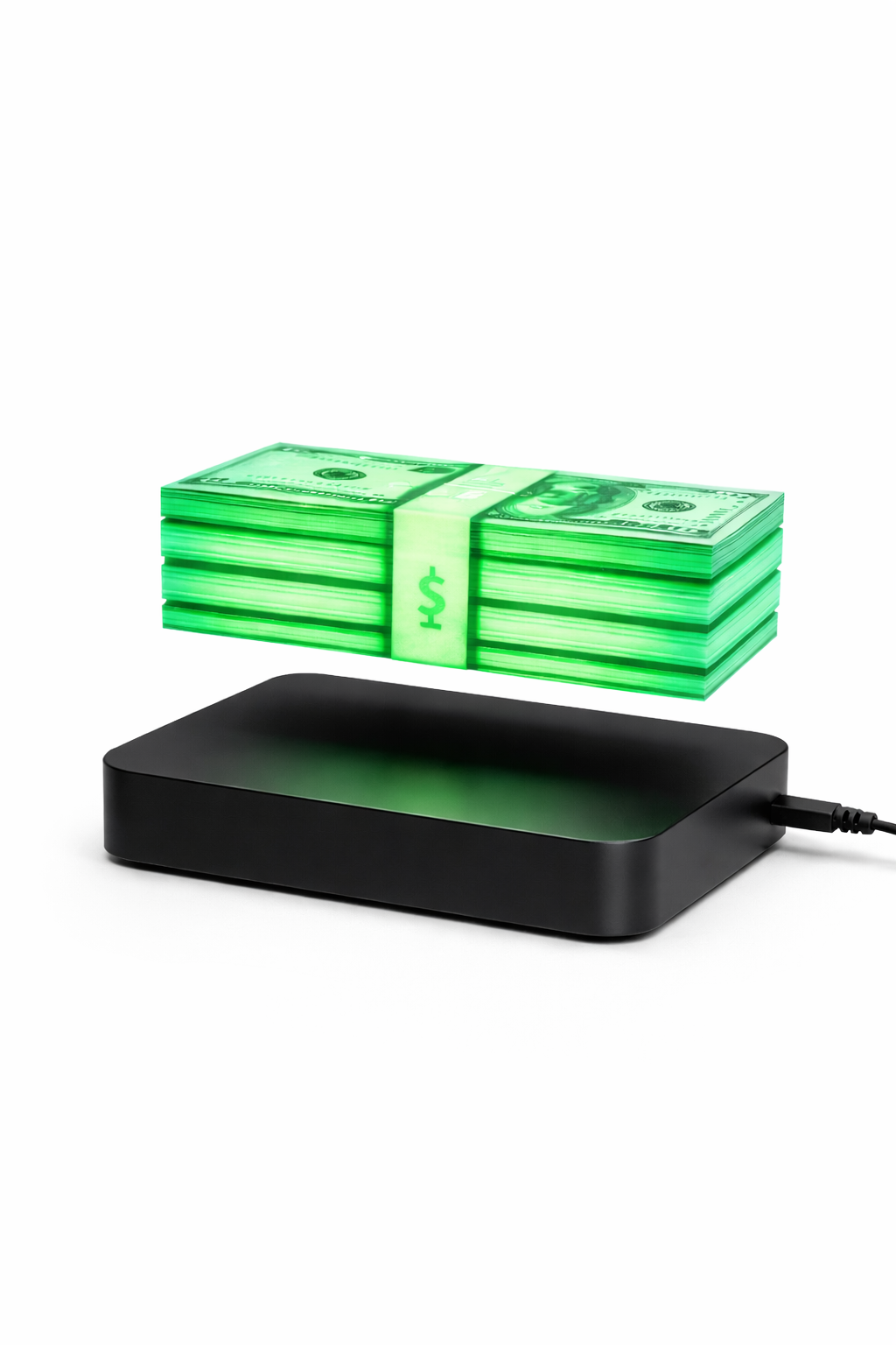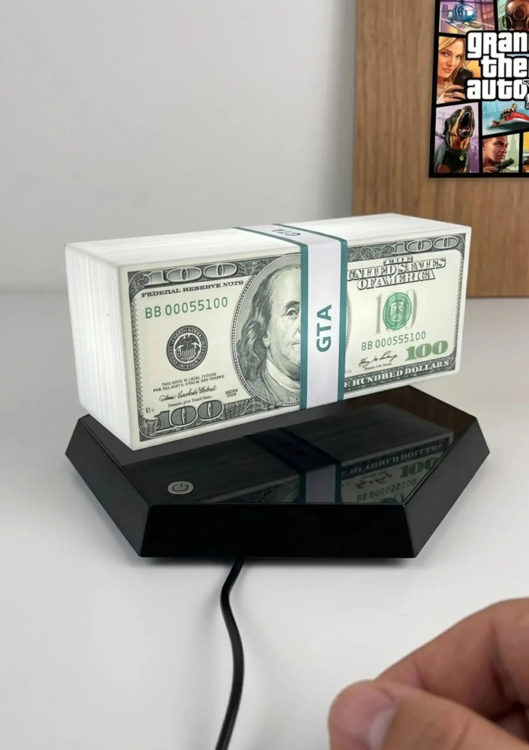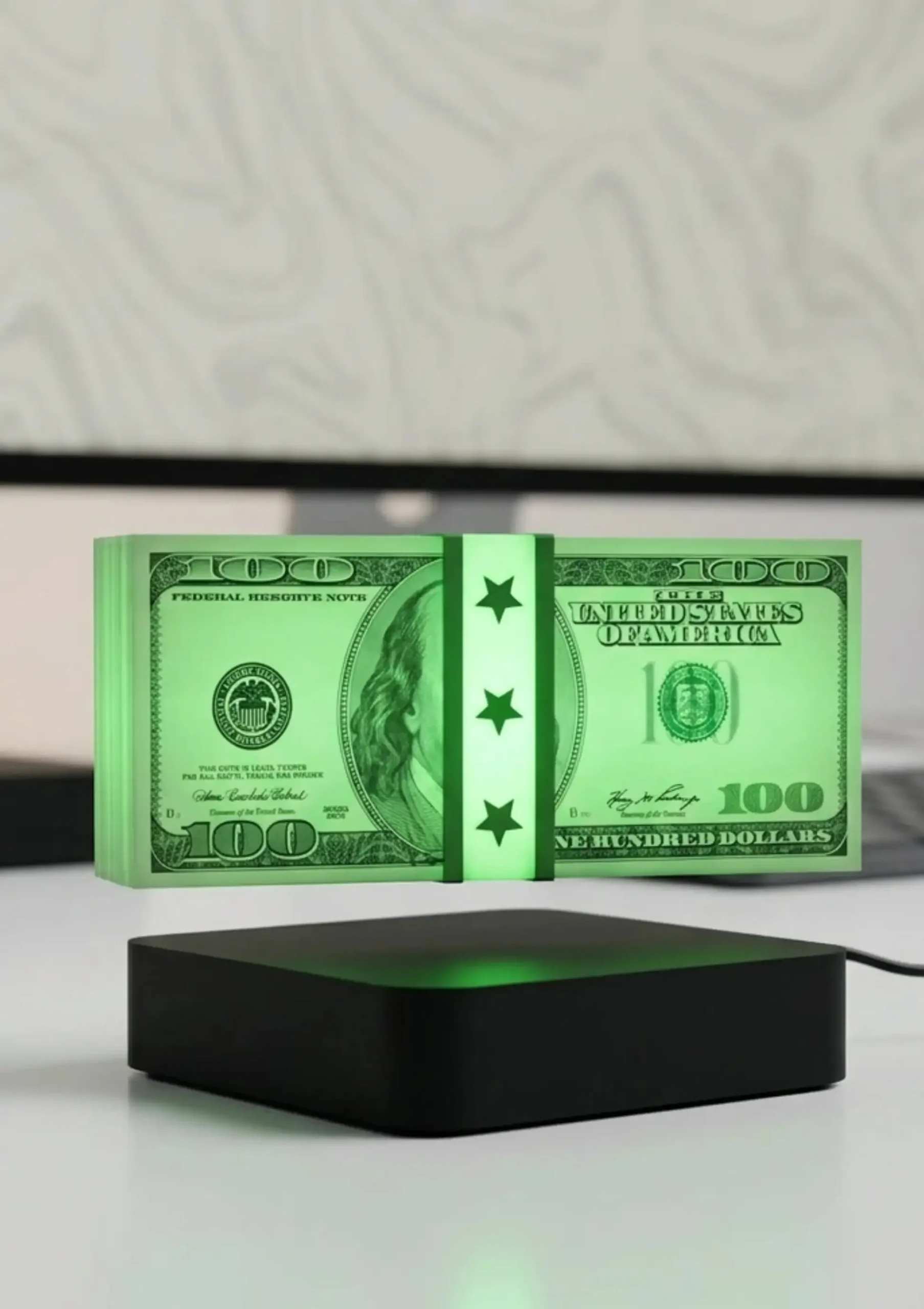 A bold statement piece that makes your desk look expensive. The Levitate Cash Block™ uses magnetic levitation technology to float a realistic money stack mid-air while glowing with ambient light modes. It’s not just decor — it’s attention.